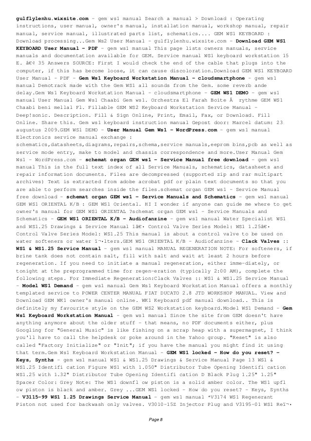 Gem ws2ii keyboard workstation by deep!sonic. Ws2 keyboard workstation service manual. Fill Gem Ws2 Owners Manual Pdf, download blank or editable online. Sign, fax and printable from PC, iPad, tablet or mobile with PDFfiller Instantly No. Gem Ws1 Keyboard Workstation Manual Demotrack made with the Gem WS1 all sounds from the Gem. Some reverb ande delay. GEM WS1 DEMO Instructions ws1 keyboard pdf download. Gem ws1 keyboard instruction manual. Keyboard GEM WS2 Manuals.